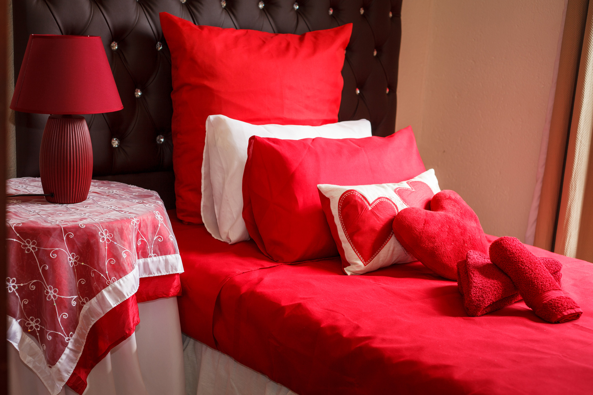 Ruby The King of precious gems. The red fluorescence power of ruby helped build the first working laser in 1960 Rubies both natural and synthetic are still used to make lasers as well as watches and medical instruments. Our Ruby room Features a luxurious double size bed, it shares a toilet with shower and tub with the pearl room and floral room.